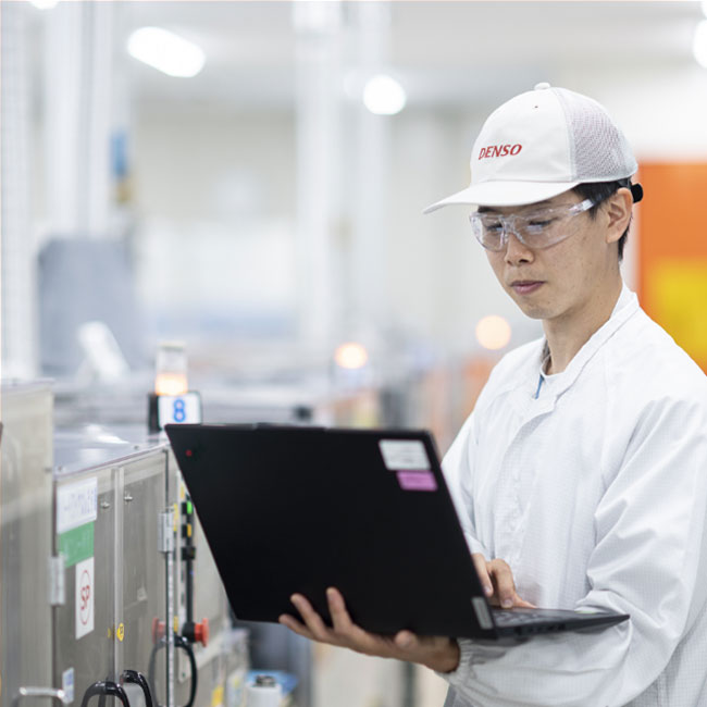 仕事内容について生産技術とはデンソー山形で生産されている製品をつくるための生産準備を行う部署です。社内の関係部署や社外のメーカーと連携し、生産する上で必要な設備・プログラム等を設計、そうして準備した生産ラインを生産エリアに設置してテストを行い、量産開始から安定した流動ができるまで対応を行っています。困難に直面することもありますが、モノづくりの核となる所を考え、作り上げていく、やりがいのある仕事だと思っています。